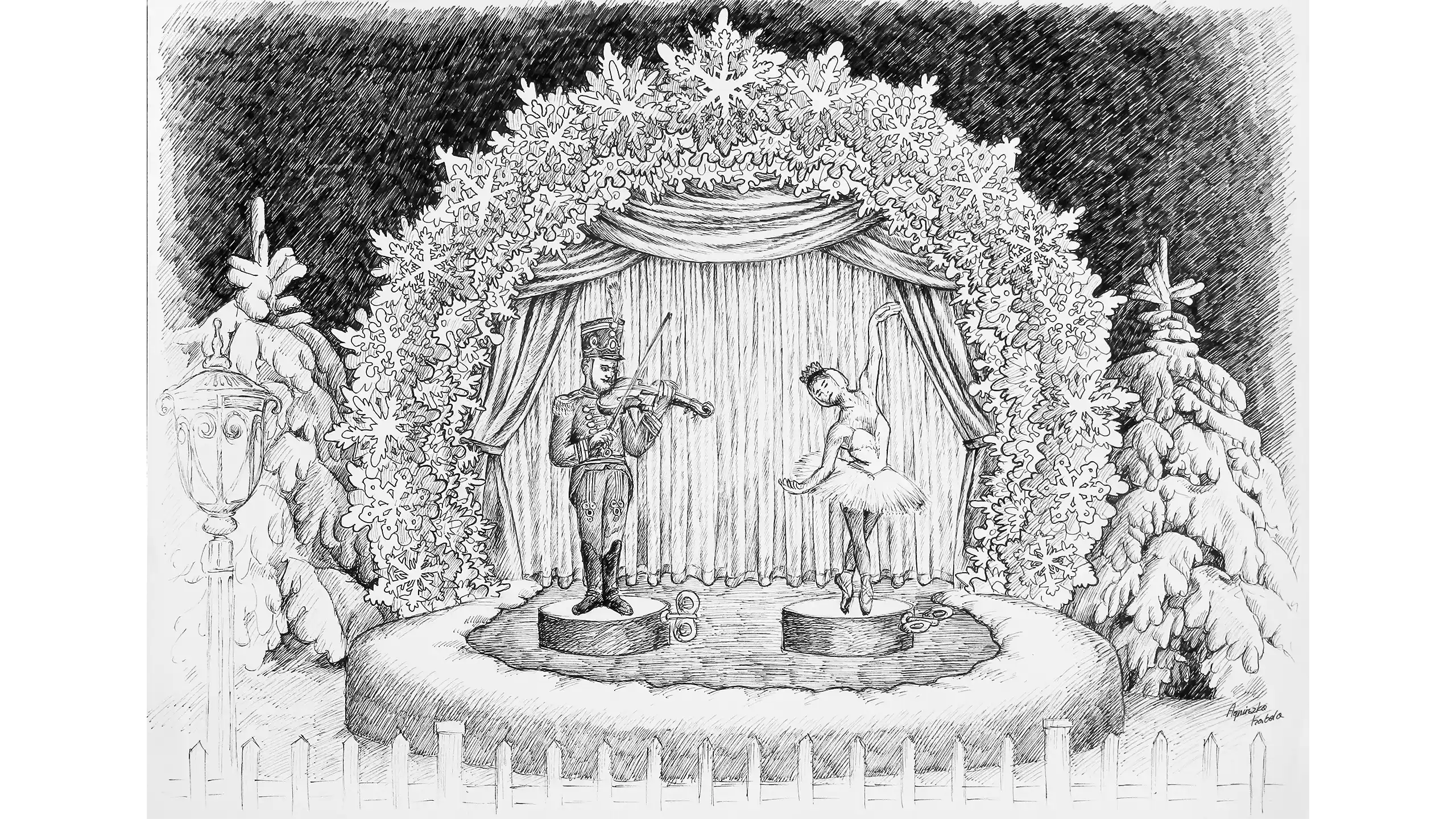 A unique series of hand-drawn conceptual illustrations created for a street festival organizer. Unlike standard ArchViz, these manual visions focus on building the warm, fairytale atmosphere essential for the holiday season. Precise sketches of cabins, bridges, and figurative scenes (such as the ballerina and tin soldier) serve as direct artistic documentation for decoration craftsmen. The traditional technique allows for total control over details and accents, effectively capturing the imagination of sponsors and contractors alike.